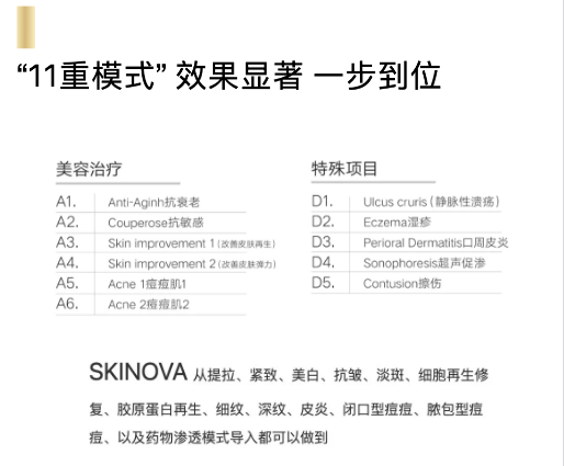 Skinova美容仪不仅修复问题肌,滋养肌肤活力,在没有痛感和副作用,可以修复各种肌肤问题,帮助改善肌肤问题,同时细胞外基质的再生和分解的均衡,自然的皮肤保湿,亮白光泽,保湿嫩肤、增加弹力等,使肌肤重现健康活力。