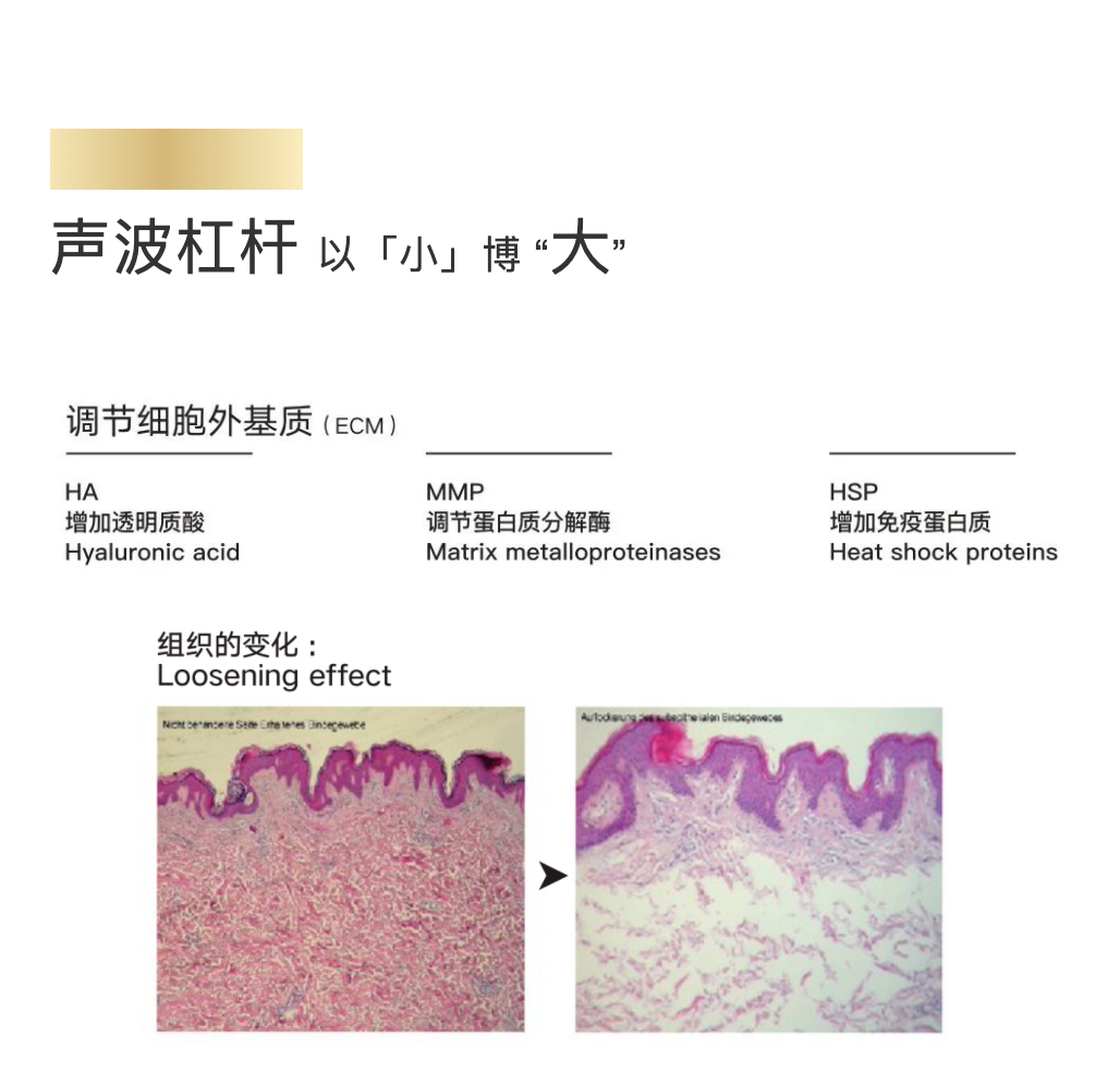 Skinova美容仪的超声波启动皮肤保护物质生成机制,保护皮肤免受刺激,生成新细胞,并且为新生的胶原蛋白提供空间,使皮肤自身的免疫力和再生能力最大化,促进皮肤再生,令其恢复正常化的均衡。