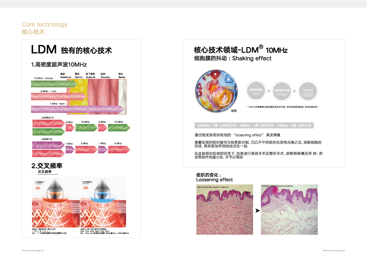 1MHZ的超声波穿透深度是到肌肉层,3MHZ的超声波穿透深度是真皮层到皮下组织,只有10MHZ超声波的穿透深度是皮下0.3厘米左右,能够准确而直接的作用于我们的真皮层。