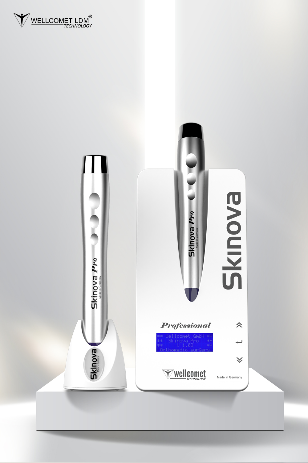 Skinova是一台超声波美容仪器,运用LDM创新技术无压热损,是目前唯通过超声波细胞共振的方式促进细胞再生的仪器,根据模式可以调节为1、3mhz或者3,10mhz的双频模式,去交替改善真皮层、表皮层的环境。