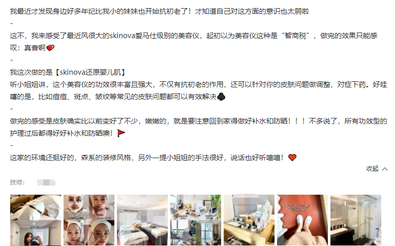 Skinova美容仪护肤,有效的修复常见皮肤问题,Skinova美容仪也已经成为一种时尚,那么Skinova美容仪真实使用效果怎么样呢?下面来看看到店Skinova美容仪体验后的反馈。