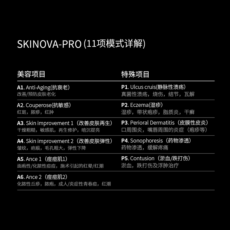 小姐姐根据我的情况推荐我做skinova还原婴儿肌,用的是售价将近4W德国Skinova美容仪,这款美容仪器共有11个模式,抗衰、提拉、紧致、再生、以及痘痘等。