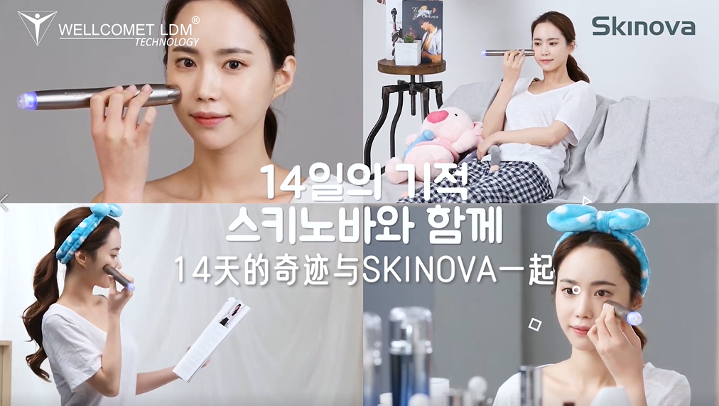 在韩国去美容院的话应该听说过LDM水滴提升,一句话就是光彩提拉术,Skinova是把在皮肤科做的高价皮肤管理带到家里来,我们去皮肤科的话,会花高价去做皮肤护理,这个Skinova美容仪可以带回家用。