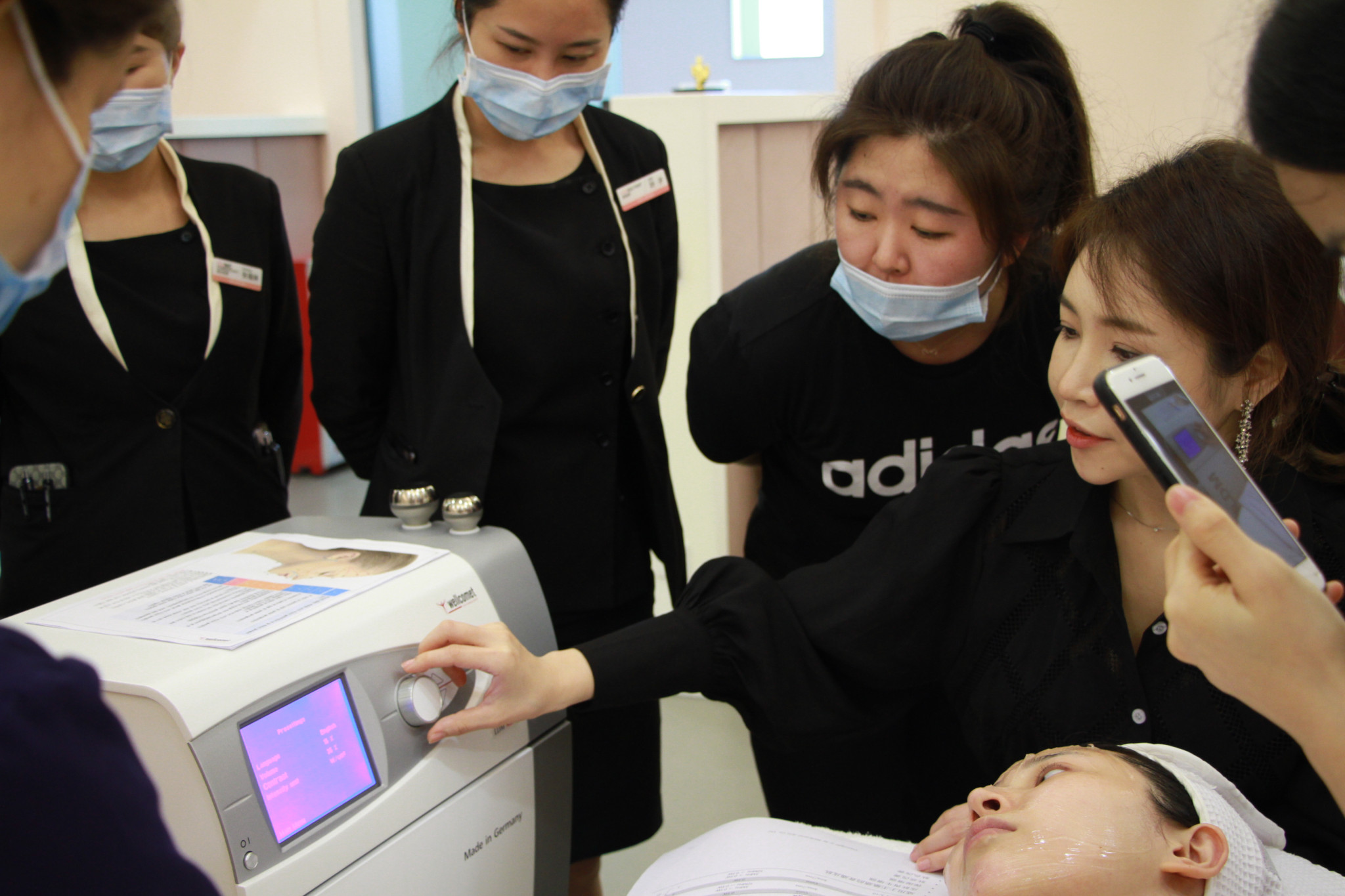 在进行了一系列的专业理论知识培训后,也与大家展开了讨论并对大家的提问进行了耐心细致的解答。在下午时段(金京熹)小姐对医师以及美容师们进行了技术实操培训与展示,充分展现了WELLCOMET中国分公司的技术水平也专业度。同时也得到了大家一致的好评与认可!