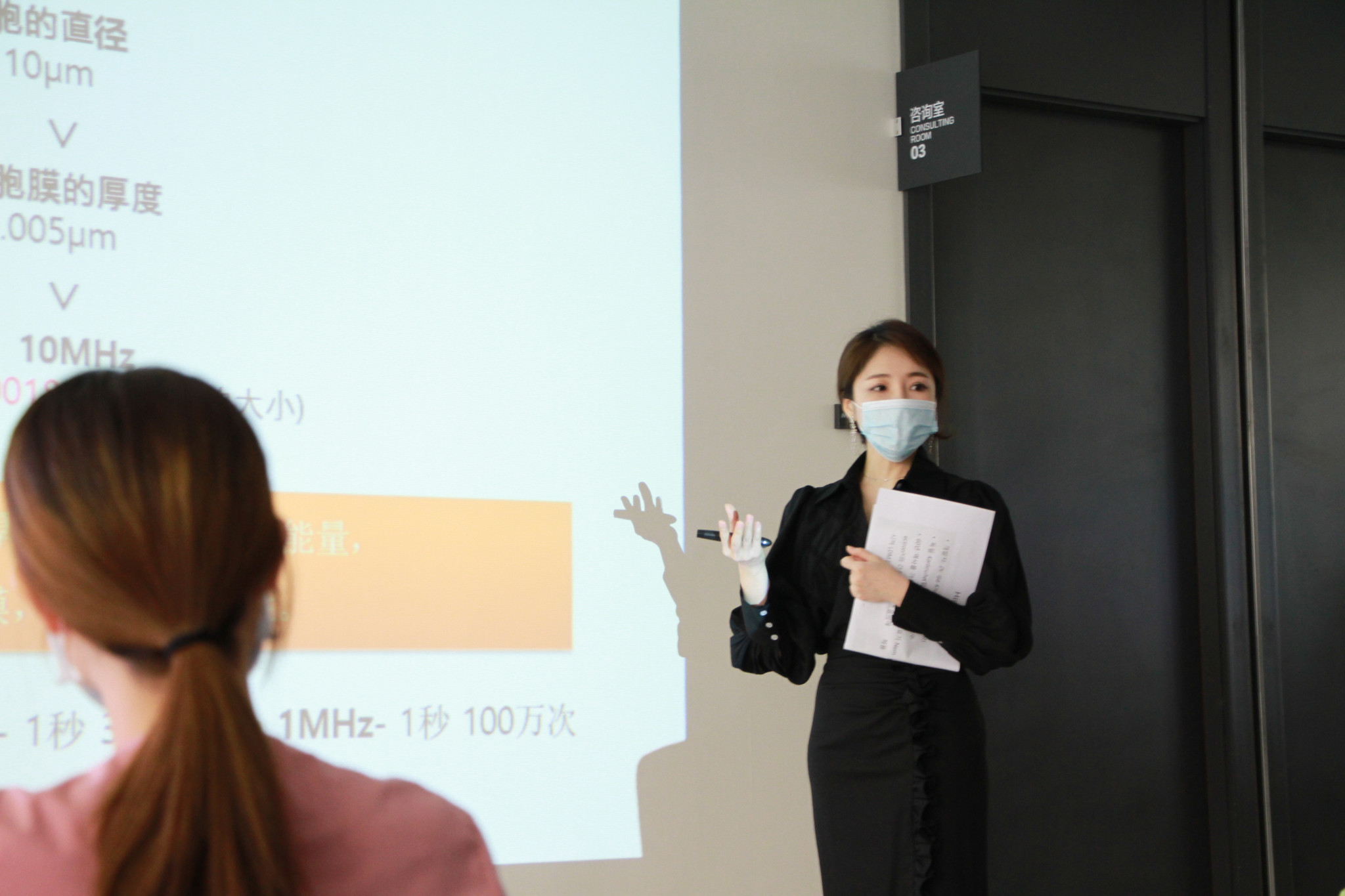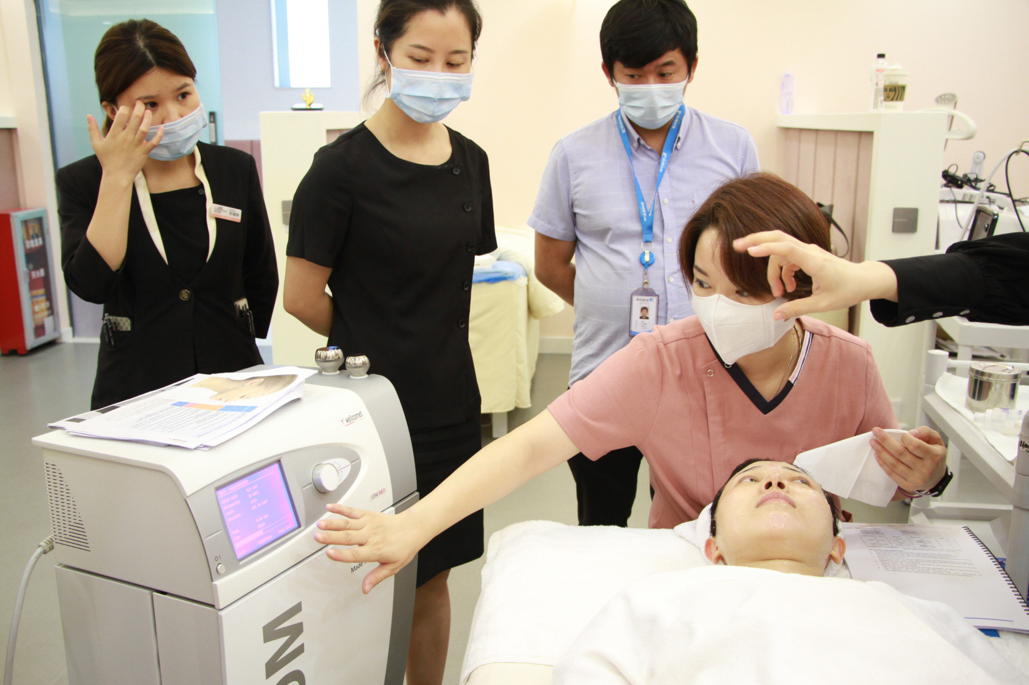 金京熹小姐对奥园健康集团旗下医疗美容机构的医师和工作人员进行培训讲解,深度剖析德国WELLCOMET-LDM高端美容仪器的工作原理以及从生物学角度出发解释皮肤构造。